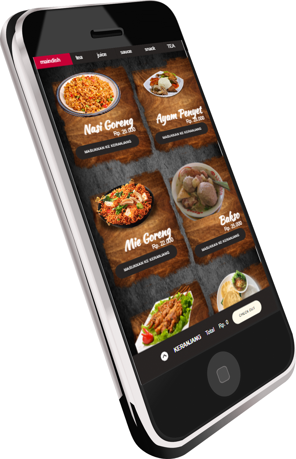 Tampilan menu otomatis menyesuaikan layar HP pelanggan dengan desain modern yang memanjakan mata.